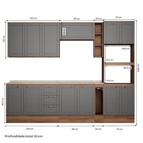 Especificações da modulação: Medidas totais: Largura: 270 cm | Altura: 230 cm | Profundidade: 51 cm Peso total: 208,1 Kg