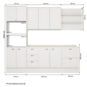 Especificações da modulação: Medidas totais: Largura: 270 cm | Altura: 230 cm | Profundidade: 51 cm Peso total: 190,7 Kg