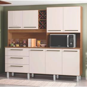 O Armário de cozinha completa Ajax possui design moderno e qualidade única! Possui três gavetas espaçosas e reforçadas com travamentos nos fundos, três prateleiras internas com excelente espaço para armazenagem de produtos e utensílios. Também contém espaço para forno micro-ondas e dois nichos garrafeiros estilo "X" com capacidade total para oito garrafas. E ainda conta com pés reguláveis em pvc que não agridem o piso!