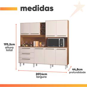 MODELO: Armário de Cozinha Completa Com Adega 7 Portas 3 Gavetas 2,07m Ajax Zanzini