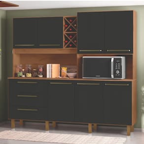 O Armário de cozinha completa Ajax possui design moderno e qualidade única! Possui três gavetas espaçosas e reforçadas com travamentos nos fundos, três prateleiras internas com excelente espaço para armazenagem de produtos e utensílios. Também contém espaço para forno micro-ondas e dois nichos garrafeiros estilo "X" com capacidade total para oito garrafas. E ainda conta com pés reguláveis em pvc que não agridem o piso!