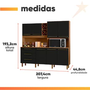 MODELO: Armário de Cozinha Completa Com Adega 7 Portas 3 Gavetas 2,07m Ajax Zanzini