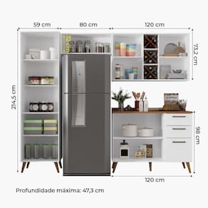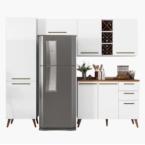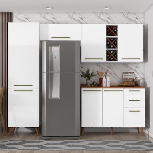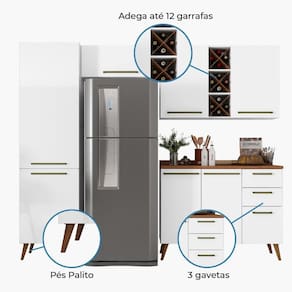O Armário de Cozinha Completa Favorita é um excelente produto para deixar a sua cozinha ainda mais linda e organizada. Ideal para aproveitar os espaços, e organizar os utensílios de sua cozinha. Possui três gavetas espaçosas, e adega para guardar suas bebidas e deixar o lugar mais bonito e atrativo. Aproveite e utilize outros produtos da linha "Favorita" para renovar sua casa com design moderno e elegante! Medidas superiores (dimensão máxima):[ A ] = 73,2 cm[ L ] = 259 cm[ P ] = 47,3 cmMedidas inferiores (dimensão máxima):[ A ] = 214,5 cm [ L ] = 259 cm[ P ] = 47,3 cmNOME: Armário De Cozinha Completa Com Adega 7 Portas 3 Gavetas Favorita Branco/NatureMARCA: ZanziniCOR: Branco/Nature MATERIAL: MDP 15 mm ACABAMENTO: UV-Verniz/Texturizado UV-Verniz TIPO DE ACABAMENTO: Fosco / FoscoPORTAS: 7GAVETAS: 3TIPO DE PORTA: Com dobradiçasPRATELEIRAS: 7PUXADORES: PlásticoTIPO DE PUXADORES: Externos PÉS: 10MATERIAL DOS PÉS: PlásticoMATERIAL DO TAMPO: MDP 25 mmDOBRADIÇAS: Metálicas 35 mmCORREDIÇAS: TelescópicasGARRAFEIRO: Comporta 12 garrafas INFORMAÇÕES COMPLEMENTARES: Fabricado com painéis de madeira reflorestada e certificadaSISTEMA DE MONTAGEM: Parafusos auto atarraxantes, cola, cavilhas, pregos. RECOMENDAÇÕES DE LIMPEZA: Limpar com flanela ou pano macio seco, não utilizar produtos abrasivos, desengordurantes, álcool ou qualquer outro produto químico. Não expor o produto diretamente à luz solar e à umidade. GARANTIA: 3 meses contra defeito de fabricação ITENS INCLUSOS: 1 Armário Aéreo duplo; 1 Armário Aéreo; 1 Balcão 1,20m; 1 balcão 0,59m; 1 Paneleiro Duplo e 1 Armário de geladeira. PESO: 169kg Montagem não inclusa. Entregamos até a porta de entrada da casa do cliente ou até a portaria do condomínio.