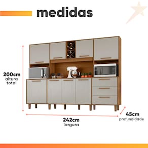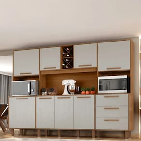 O Kit Apollo é a escolha ideal para quem busca uma cozinha funcional e estilosa. Com 8 portas e 3 gavetas equipadas com corrediças telescópicas, oferece praticidade no armazenamento. Seus puxadores em MDF garantem maior durabilidade, enquanto o espaço para 8 garrafas adiciona um toque de sofisticação. Além disso, conta com compartimentos específicos para fornos e micro-ondas, proporcionando ainda mais organização. Os pés com regulagem de altura permitem adaptação, garantindo estabilidade e um encaixe perfeito no ambiente. A escolha perfeita para quem deseja funcionalidade e estilo.