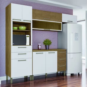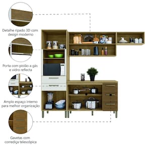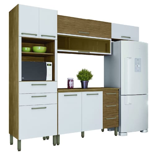 ITENS INCLUSOS:1 Paneleiro, 1 Armário Aéreo Com Vidro Reflecta 1,20m, 1 Armário Aéreo Geladeira 0,70m, 1 Balcão Triplo 1,20m, 1 Manual de montagem e 1 Kit Parafusos