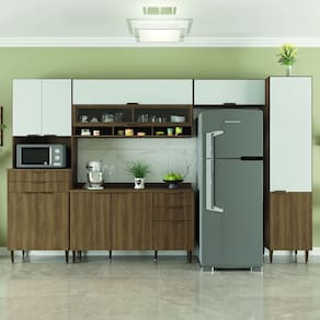 O Armário de Cozinha Completa Paris amplo e versátil veio para garantir praticidade em seu dia a dia! Conta com 11 portas, uma das portas superiores possui vidro para deixar o ambiente ainda mais sofisticado -, 5 gavetas com corrediças telescópicas garantindo um deslizamento suave, prateleiras bem divididas para melhor aproveitamento do espaço, 4 nichos, sendo que um deles possui espaço para acomodar forno micro-ondas e demais aparelhos de utilidade doméstica. Oarmário ainda conta com um balcão amplo com tampo para que você tenha uma bancada versátil e espaçosa, com capacidade para colocar eletrodomésticos e decorações, e pés em plástico resistente que não agride o piso. O armário de cozinha perfeito para a sua residência!