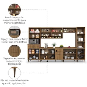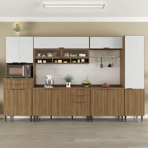 O Armário de Cozinha Completa Paris amplo e versátil veio para garantir praticidade em seu dia a dia! Conta com 13 portas, uma das portas superiores possui vidro para deixar o ambiente ainda mais sofisticado -, 5 gavetas com corrediças telescópicas garantindo um deslizamento suave, prateleiras bem divididas para melhor aproveitamento do espaço, 4 nichos, sendo que um deles possui espaço para acomodar forno micro-ondas e demais aparelhos de utilidade doméstica. O armário ainda conta com 2 balcões amplos com tampo para que você tenha uma bancada versátil e espaçosa, com capacidade para colocar eletrodomésticos e decorações, e pés em plástico resistente que não agride o piso. O armário de cozinha perfeito para a sua residência!