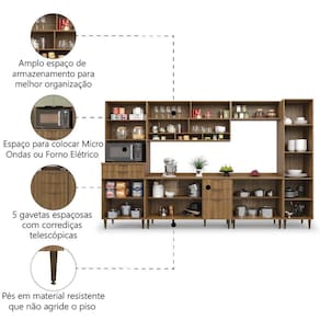 O Armário de Cozinha Completa Paris amplo e versátil veio para garantir praticidade em seu dia a dia! Conta com 13 portas, uma das portas superiores possui vidro para deixar o ambiente ainda mais sofisticado -, 5 gavetas com corrediças telescópicas garantindo um deslizamento suave, prateleiras bem divididas para melhor aproveitamento do espaço, 4 nichos, sendo que um deles possui espaço para acomodar forno micro-ondas e demais aparelhos de utilidade doméstica. O armário ainda conta com 2 balcões amplos com tampo para que você tenha uma bancada versátil e espaçosa, com capacidade para colocar eletrodomésticos e decorações, e pés em plástico resistente que não agride o piso. O armário de cozinha perfeito para a sua residência!