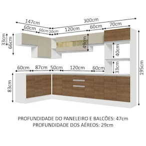 - 47 cm de profundidade nos balcões e na torre e 29 cm nos aéreos