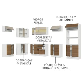 Um dos grandes destaques é a fabricação feita 100% em MDF, material ecologicamente correto e que proporciona uma ótima durabilidade ao móvel. Além disso, possui puxadores em alumínio, corrediças e dobradiças metálicas e pés reguláveis em PVC, com rodapé removível em MDF.