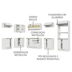 Um dos grandes destaques é a fabricação feita 100% em MDF, material ecologicamente correto e que proporciona uma ótima durabilidade ao móvel. Além disso, possui puxadores em alumínio, corrediças e dobradiças metálicas e pés reguláveis em PVC, com rodapé removível em MDF.