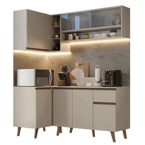 A Cozinha de Canto da linha Nice une design moderno e soluções inteligentes para a sua casa. Os diferenciais dessa composição incluem o aéreo com duas portas em vidro Pontilhado e o aéreo de canto com adega acoplada, perfeito para quem deseja otimizar espaço.