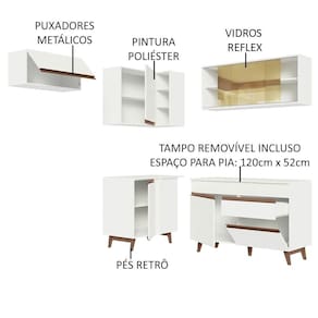 A durabilidade do móvel é muito importante, por isso a Madesa investe na utilização de materiais e processos de alta qualidade na fabricação dos produtos. Este armário possui acabamento branco em Pintura Poliéster ecológica, corrediças e dobradiças metálicas, puxadores em alumínio, pés em madeira maciça e um lindo vidro no modelo reflex no aéreo.