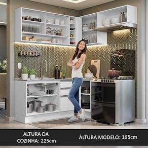O Armário de Cozinha Completa de Canto Glamy é perfeito para quem deseja ter uma cozinha moderna e espaçosa. Com um design atual, ele se adapta facilmente a qualquer ambiente, combinando elegância e praticidade.