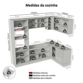 - 52 cm de profundidade nos balcões e 31cm nos aéreos