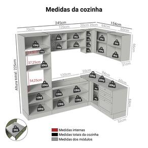 - 52 cm de profundidade nos balcões e 31cm nos aéreos