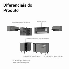Fabricado com materiais de qualidade superior, conta com dobradiças metálicas nas portas, corrediças telescópicas na gaveta, puxadores de alumínio e lindos vidros no modelo neutral.