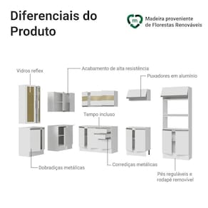 Fabricada em 100% MDF, a linha Smart garante durabilidade e alta resistência. Toda a cozinha é em branco, proporcionando um visual clean e elegante. A cristaleira e o aéreo possuem portas em vidro reflex, que agrega sofisticação e modernidade ao ambiente.