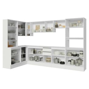 A Cozinha de Canto Smart, com 447 cm de largura, é ideal para otimizar o espaço. Seu grande diferencial é a cristaleira, que traz um toque especial a cozinha.