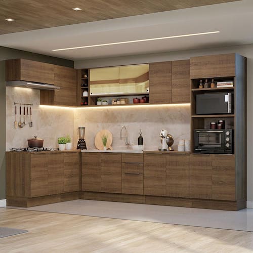 O Armário de Cozinha Completa de Canto Stella, da Madesa, é uma opção espaçosa e moderna, ideal para quem busca um móvel funcional e elegante.