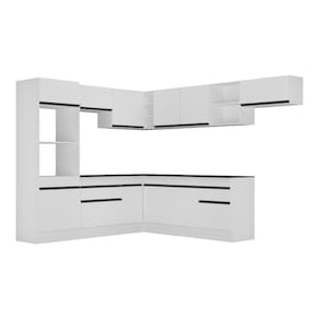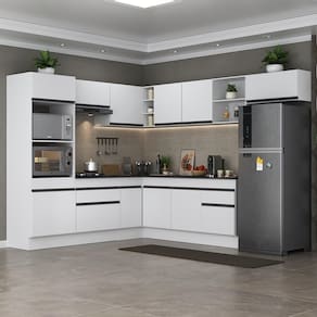 Conteúdo da Embalagem: 1 (um) armário para forno e microondas 62cm 1 (um) armário aéreo 70cm 1 (um) armário aéreo de canto 90cm 1 (um) armário aéreo 150cm 1 (um) balcão com tampo 70cm 1 (um) balcão com tampo de canto 90cm 1 (um) balcão com tampo 150cm 1 (um) armário aéreo 70cm 1 (um) kit com rodapés