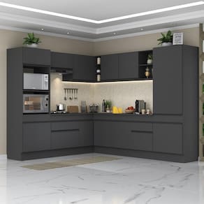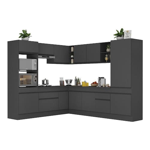 Armário de Cozinha Completa de Canto com Rodapé Veneza Multimóveis MP2081.895 Preto