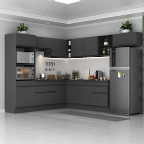 Conteúdo da Embalagem: 1 (um) armário para forno e microondas 62cm 1 (um) armário aéreo 70cm 1 (um) armário aéreo de canto 90cm 1 (um) armário aéreo 150cm 1 (um) balcão com tampo 70cm 1 (um) balcão com tampo de canto 90cm 1 (um) balcão com tampo 150cm 1 (um) armário aéreo 70cm 1 (um) kit com rodapés