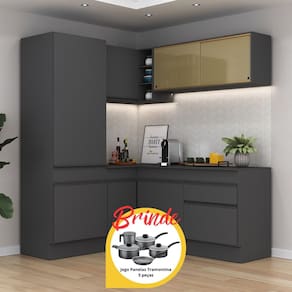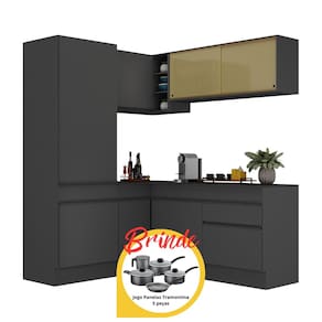 Armário de Cozinha Completa de Canto com Rodapé Veneza Multimóveis MP2088.895 Preto