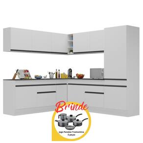 Conteúdo da Embalagem: 2 (dois) armários aéreos 120cm 1 (um) armário aéreo de canto 90cm 2 (dois) balcões com tampo 120cm 1 (um) balcão com tampo de canto 90cm 1 (um) paneleiro 62cm 1 (um) kit com rodapés