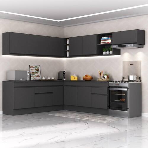 Armário de Cozinha Completa de Canto com Rodapé Veneza Multimóveis MP2103.895 Preto