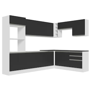 A Cozinha de Canto da linha Acordes da Madesa é fabricada em 100% MDF e possui itens de qualidade como puxadores em alumínio, dobradiças metálicas e corrediças telescópicas.