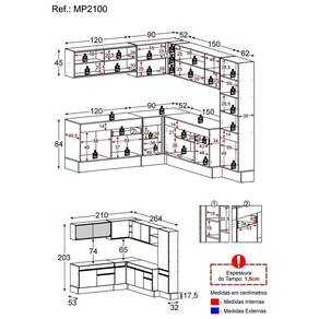 Altura: 203cm | Largura: 210 x 264cm | Profundidade: 32cm (aéreos e paneleiro) - 53cm (balcão com tampo)