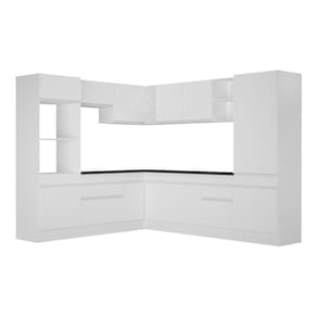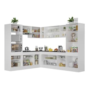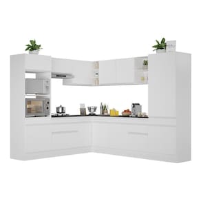 Armário De Cozinha Completa De Canto Com Rodapé Veneza Multimóveis V2081 Branco Branco