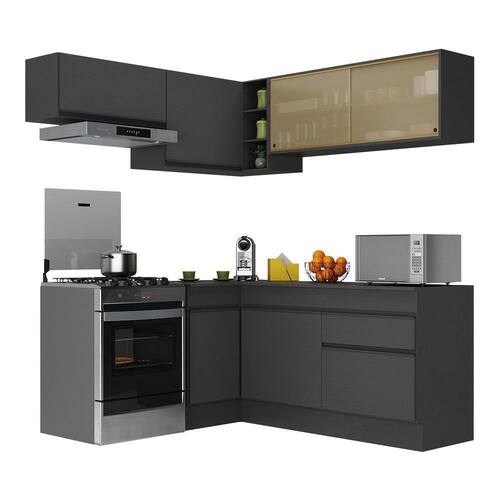 Armário De Cozinha Completa De Canto Com Rodapé Veneza Multimóveis V2094 Preto Preto