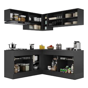 Armário De Cozinha Completa De Canto Com Rodapé Veneza Multimóveis Mp2097.898 Preto/branco