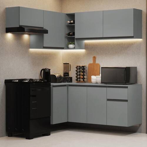 O Armário de Canto Nice da Madesa vai deixar a sua cozinha mais organizada e sofisticada. Com um design suspenso e moderno, facilita a limpeza e otimiza o espaço.