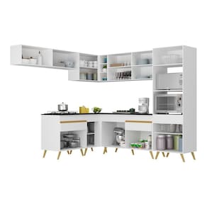 Armário De Cozinha Completa De Canto Veneza Multimóveis V2070 Branco/dourado Branco/dourado