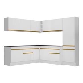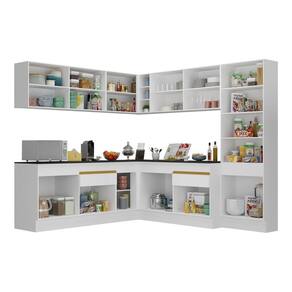Armário De Cozinha Completa De Canto Com Rodapé Veneza Multimóveis V2102 Branco/dourado Branco/dourado