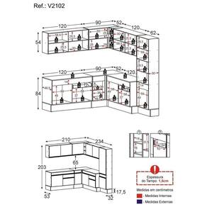 O Armário de Cozinha Completa de Canto com Rodapé Veneza Multimóveis V2102 tem um excelente custo benefício e um amplo espaço interno. Produzido em MDP com acabamento acetinado (cerca de 20% de brilho), que garante maior durabilidade e resistência, possui corrediças metálicas (mais leveza no manuseio), rodapés, que deixam o ambiente mais estiloso, puxadores em ABS e tampo em MDP 15mm com pintura de alta resistência. Os módulos de canto podem ser montados dos dois lados (esquerdo ou direito), conforme a sua preferência. Esta cozinha conta, ainda, com balcão com tampo removível (compatível com pia de 120 cm), com 1 gaveta e 2 portas. Os módulos são individuais e você pode montar da maneira que se adaptar melhor ao seu ambiente. Para deixar sua cozinha mais bonita e organizada, possui paneleiro e compartimento especial para utensílios mais altos.Conteúdo da Embalagem:2 (dois) armários aéreos 120cm1 (um) armário aéreo de canto 90cm2 (dois) balcões com tampo 120cm1 (um) balcão com tampo de canto 90cm1 (um) paneleiro 62cm1 (um) kit com rodapésDimensões do produto montado:Altura: 203cm | Largura: 210 x 234cm | Profundidade: 32cm (aéreos e paneleiro) - 53cm (balcão com tampo)*Você pode consultar as medidas internas na imagem técnica do produto.*As cores do produto podem sofrer variações de tonalidade de acordo com as configurações do seu dispositivo.Imagem meramente ilustrativa. Decoração e eletros não acompanham o produto.O produto será entregue desmontado e não disponibilizamos o serviço de montagem. Acabamento: Pintura Acetinada Texturizada | Cor: Preto/Dourado | Tonalidade: Preto | Material: MDP | Referência do Modelo: V2102 | Coleção: Veneza | Instruções de Cuidado: Limpar com pano seco para retirar o pó. Não utilizar lustra móveis e produtos químicos ou abrasivos à limpeza. | Sistema de Montagem: O produto acompanha manual de montagem e kit ferragem. O produto será entregue desmontado e não disponibilizamos o serviço de montagem. | Produto Composto por: 2 armários aéreos 120cm, 1 armário aéreo de canto 90cm, 2 balcões com tampo 120cm, 1 balcão com tampo de canto 90cm, 1 paneleiro 62cm, 1 kit com rodapés, manual de montagem e kit ferragem. | Altura Montado: 203 | Largura Montado: 210 | Profundidade Montado: 234 | Tamanho (L x A x P): 210 x 203 x 234 | Peso do Produto: 196 | Garantia do Fabricante: 3 | Fabricante: Multimóveis | Requer Montagem: Sim | Quantidade de Portas: 12 | Quantidade de Gavetas: 2 | Quantidade de Prateleiras: 11 | Quantidade de Puxadores: 14 | Quantidade de Pés: 18 | Porta com Vidro: Não | Corrediça: Metálica | Material do Puxador: ABS | Material dos Pés: Polipropileno | Acompanha Pia Inox: Não | Balcão 120 cm compatível para uso de pia: Sim | Tampo Incluso: Sim | Quantidade de Tampos: 3 | Material do Tampo: MDP | Espessura do Tampo: 1.5 | Com Prateleiras: Sim | Produto: Cozinha Completa | Tipo: Modular | Altura (cm): 203 cm | Largura (cm): 210 cm | Profundidade (cm): 234 cm | Estado de Origem: RS | Produto precisa de Montagem?: Sim, sugerimos a contratação do nosso serviço de montagem (para os CEPs em que o serviço está disponível) ou de algum profissional experiente de sua preferência | Ubicação do móvel: Não aplica | Altura do Produto com Embalagem: 113 | Largura do Produto com Embalagem: 66 | Comprimento do Produto com Embalagem: 189 | Peso do Produto com Embalagem: 196 | Nome do Produto no Fornecedor: Armário de Cozinha Completa de Canto com Rodapé Veneza Multimóveis V2102 Preto/Dourado | Descrição do Tamanho: (L x A X P): 210 x 203 x 234 cm | Tempo de Garantia: 3 meses | Destaque 1: MDP com acabamento acetinado: maior durabilidade e resistência. | Destaque 2: Balcão com tampo removível: pode ser utilizado com pia. | Destaque 3: Gavetas com corrediças metálicas: mais leveza no manuseio. | Destaque 4: Tamanho do Produto Montado (L x A X P): 210 x 203 x 234 cm | Destaque 5: Os módulos são individuais e você pode montar da maneira que se adaptar melhor ao seu ambiente. Garantia de 90 dias contra defeitos de fabricação. | Marca: Multimóveis | Acessórios incluídos: N/A Cor: Branco/Dourado