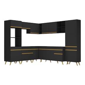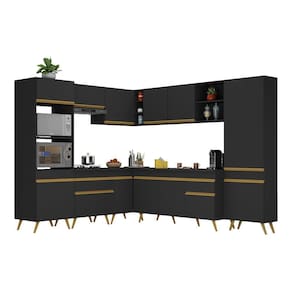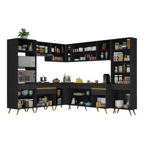 Armário De Cozinha Completa De Canto Veneza Multimóveis V2047 Preto/dourado Preto/dourado