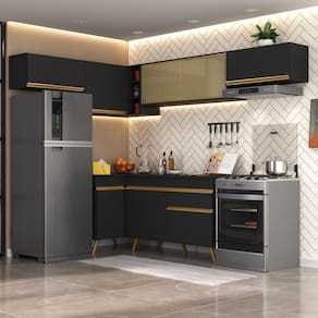 Armário de Cozinha Completa de Canto Veneza Multimóveis V2060 - Preto