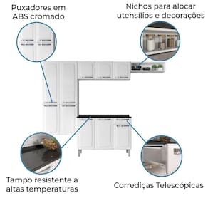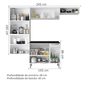 O Armário de Cozinha Completa Rose da Itatiaia é a combinação de qualidade, beleza e organização. Possui 10 portas e 1 gaveta, garantindo excelente espaço para seus utensílios e eletrodomésticos. Além disso, ela irá te encantar por sua alta durabilidade e resistência! MEDIDAS: [ A ] = 165 cm [ L ] = 245 cm [ P ] = 45 cm MODELO: Cozinha Completa Rose MARCA: Itatiaia COR: Branco TIPO DE PINTURA: Eletroestática a pó ACABAMENTO: Brilho PÉS: 4 MATERIAL DOS PÉS: Plástico PÉS REGULÁVEIS: Sim CORREDIÇAS: Telescópicas ESTRUTURA: Aço PORTAS: 10 GAVETAS: 1 NICHOS: 1 PRATELEIRAS: 4 ITENS INCLUSOS: 1 Paneleiro; 1 Armário Aéreo, 1 Nicho e 1 Balcão de 1,05m. PESO SUPORTADO PRATELEIRAS: 15kg PESO: 50,92kg RECOMENDAÇÕES DE LIMPEZA: Limpeza com pano umedecido NECESSITA MONTAGEM: Sim SISTEMA DE MONTAGEM: Parafusos GARANTIA: 12 meses pelo fabricante Montagem não inclusa. Entregamos até a porta de entrada da casa do cliente ou até a portaria do condomínio.