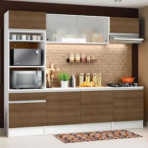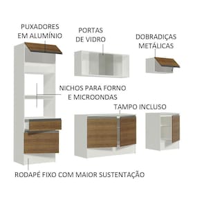 A Cozinha Completa Topazio é uma cozinha pensada nos mínimos detalhes. Muito atual, combina com ambientes modernos, retrô ou coloridos. Seu aéreo em vidro agrega beleza e sofisticação.