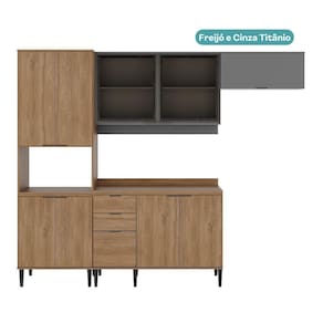 Cor: Freijó com Cinza Titânio | Material: MDP | Tonalidade: Cinza | Estado de Origem: RS | Peso do Produto (kg): 125,40 | Peso do Produto Com Embalagem (kg): | Altura do Produto (cm): 220 | Altura do Produto Com Embalagem: 60 | Largura do Produto (cm): 270 | Largura do Produto Com Embalagem: | Profundidade do Produto (cm): 51 | Profundidade do Produto Com Embalagem: | Produto precisa de Montagem?: SIM | Nome: Armário de Cozinha Completa Miami Motion Carraro Freijó com Cinza Titânio | Instruções/Cuidados: Limpeza com pano seco. | Conteúdo da Embalagem: 1 Armário de Cozinha Completa Miami Motion Carraro Freijó com Cinza Titânio | Nome do Simples no Fornecedor: Armário de Cozinha Completa Miami Pulse Carraro Freijó com Cinza Titânio | Descrição do Tamanho: Altura: 220 - Largura: 270 - Profundidade: 51 | Tipo de móveis de cozinha: Cozinha completa | Material para filtro: MDP | Tipo de produto: Cozinha | Materias do Corpo: MDP | de itens: 4 | batteries_required (Baterias são necessárias?): Não | external_testing_certification (Certificação de teste externo): Não aplicável | included_components (Componentes incluídos): Não aplicável | is_assembly_required (Requer montagem?): Sim | is_fragile (É frágil?): Sim | item_depth_width_height (Dimensões do item profundidade, largura, altura): Altura: 220 - Largura: 270 - Profundidade: 51 | item_weight (Peso do item): | manufacturer (Fabricante): Móveis Carraro | model_number ( do modelo): 299900315 | number_of_boxes ( de caixas): 6 | part_number ( da peça): Não aplicável | Principais Características do Produto (bullet_point#0): Cozinha | Principais Características do Produto (bullet_point#1): Design moderno | Inclui Manual de Montagem: Sim | Cômodo Indicado: Cozinha | Bullet point 2: Cozinha completa | Produto: Cozinha