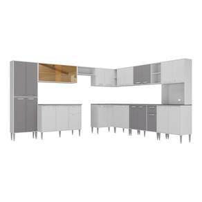 O Armário de Cozinha Completa Modulada 11 Pçs Siena Multimóveis MP2241 é produzido em MDP (15mm) com acabamento acetinado (cerca de 20% de brilho), garantindo durabilidade e facilidade na limpeza. É composto por 11 módulos individuais que podem ser montados da forma que melhor se adaptarem ao seu espaço. Com amplo espaço interno para acomodar itens de cozinha, possui 25 portas, 2 gavetas com corrediças telescópicas (manuseio suave e silencioso), dobradiças metálicas, puxadores em ABS com acabamento cromado e pés em polipropileno com regulagem de altura. As portas de correr em vidro reflecta oferecem elegância e praticidade no dia a dia. As portas e gavetas são embutidas no móvel, proporcionando um visual de cozinha planejada. Além disso, esta cozinha conta com espaço para fogão/geladeira, espaço para micro-ondas e balcão com tampo removível ( com pia de 105cm).