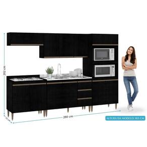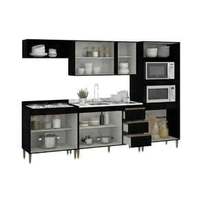 Projetada para quem não abre mão de um design sofisticado e contemporâneo, esta cozinha une o acabamento impecável em tom preto com detalhes que facilitam o seu dia a dia. É a escolha perfeita para otimizar espaços com estilo e praticidade.