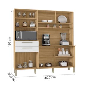 A Cozinha Montesa foi pensada nos mínimos detalhes para atender as necessidades do dia a dia, mantendo a elegância da sua cozinha ou área gourmet, com 2 gavetas e Nichos com espaço para forno ou Micro-ondas. Além de possuir compartimentos internos que facilitam a organização e praticidade. Produzida com material de qualidade, garantindo a durabilidade do produto. Medidas: [ A ] = 196 cm [ L ] = 160,7cm [ P ] = 38,8 cm MODELO: Armário de Cozinha Completa Montesa 6 Portas 2 Gavetas MARCA: Kit's Paraná COR: Frejó / Branco MATERIAL: MDP 12mm PINTURA:Pintura UV ACABAMENTO:UV PORTAS: 6 portas TIPOS DE PORTAS: Bater GAVETAS: 2 gavetas GAVETAS SUPORTAM: 4 kg PRATELEIRAS: 3 PRATELEIRAS SUPORTAM: 5kg à 7kg POSSUI NICHOS: Sim PUXADORES: Plástico DOBRADIÇAS: Metálicas CORREDIÇAS: Metálicas PÉS: 6 MATERIAL DOS PÉS: Plástico POSSUI TAMPO: Sim MATERIAL DO TAMPO: MDP15 PESO: 64kg SUPORTA: 73kg SITEMA DE MONTAGEM: Pregos parafusos e cavilhas RECOMENDAÇÕES DE LIMPEZA: A limpeza do móvel de ser efetuada somente pano macio e moderadamente umedecido com água pura ou solução com sabão neutro. Evitar mover o produto com utensílios dentro do mesmo. Atentar para as especificações no esquema de montagem, sobre o peso suportado pelo produto. GARANTIA: 3 Meses Montagem não inclusa. Entregamos até a porta de entrada da casa do cliente ou até a portaria do condomínio.