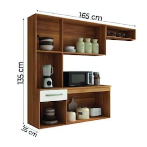 MEDIDAS: A = 135 cm L = 165 cm P = 24 cm (Superior) / 35 cm (Inferior) PESO: 35kg PESO SUPORTADO: 67kg GAVETA SUPORTA ATÉ: 5kg BALCÃO SUPORTA ATÉ: 13kg TAMPO SUPORTA ATÉ: 13kg BASES ARMÁRIO SUPORTA ATÉ: 5kg MODELO: Armário de Cozinha Completa Suspenso Luna MARCA: Aramóveis ACABAMENTO: Pintura UV MATERIAL DA ESTRUTURA: MDP ESPESSURA DO MATERIAL: 12mm PORTAS: 6 TIPO DE PORTA: Bater DOBRADIÇAS: Metálicas GAVETAS: 1 CORREDIÇAS: Metálicas MATERIAL DOS PUXADORES: ABS QUANTIDADE DE PUXADORES: 7 NICHOS: 2 INSTRUÇÕES E CUIDADOS: Utilizar pano macio e seco, não utilizar produtos abrasivos. ITENS INCLUSOS: 1 Armário de Cozinha Completa, 1 Manual de Montagem, 1 Kit Parafusos GARANTIA: 3 Meses