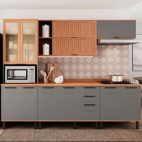 Cor: Freijó com Cinza | Inclui manual de montagem: Sim | Materiais do corpo: MDP | Requer Montagem: Sim | Tipo de móveis de cozinha: Cozinha Completa