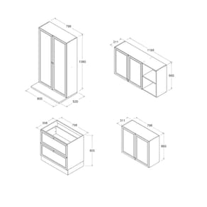 - Compartimentos variados, incluindo gabinetes superiores e inferiores, otimizando o aproveitamento do espaço em cozinhas de diferentes tamanhos